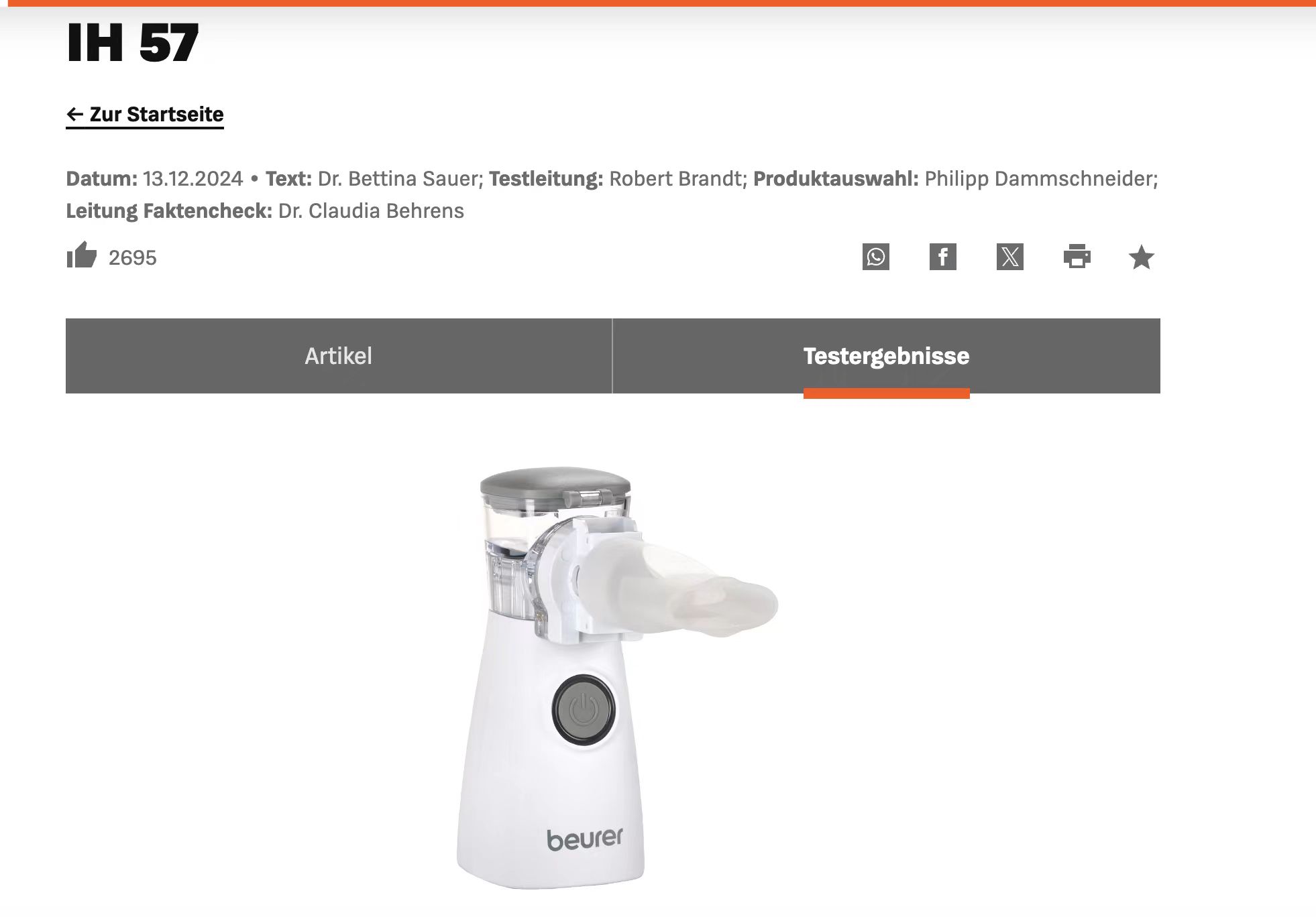 在YIRDOC優(yōu)質(zhì)產(chǎn)品與BEURER品牌加持下,IH57在2024年的全球銷售中取得不俗的成績(jī),并在2024年末得到了歐洲權(quán)威測(cè)評(píng)機(jī)構(gòu)Stiftung Warentest的認(rèn)可,相信2025年IH57會(huì)獲得更不錯(cuò)的成績(jī)。